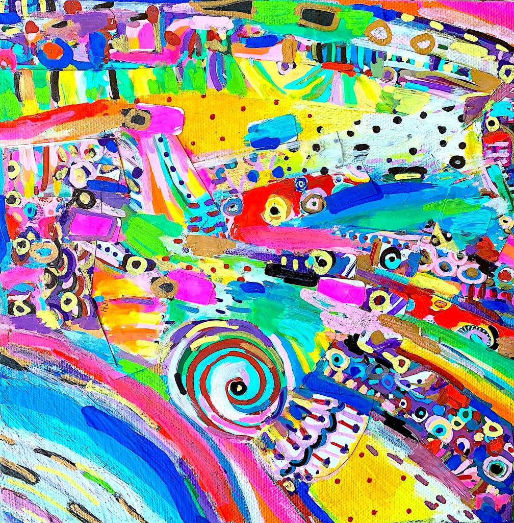 Meakinesque World: Mixed media on canvas, 30x30cm, 90€